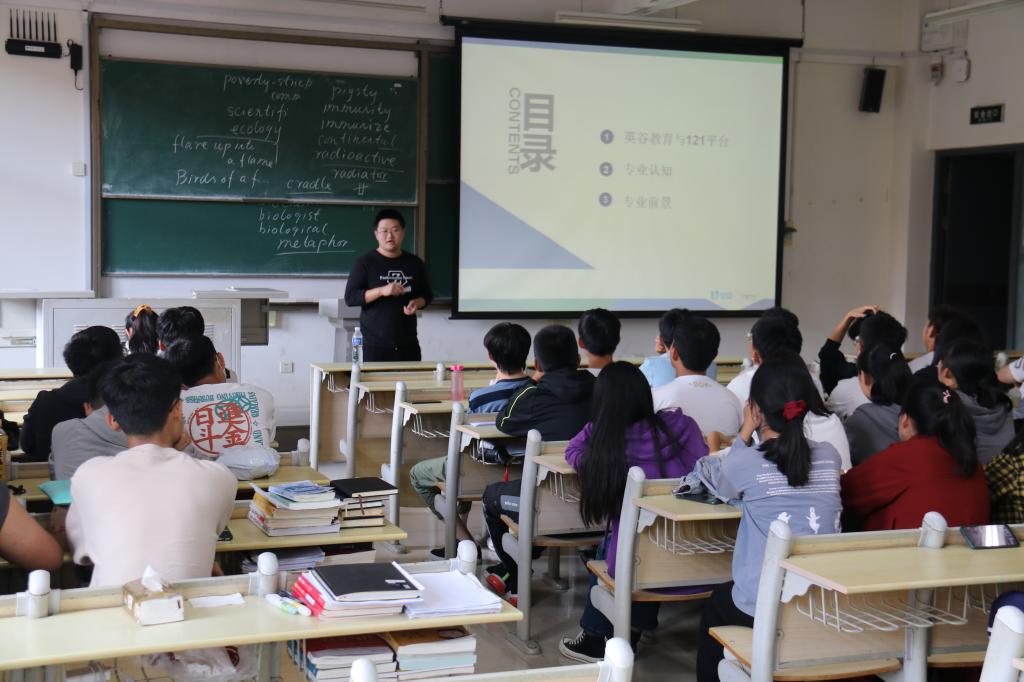 为帮助学生适应大学生活,坚定专业思想,养成良好的学习风尚,信息与控制工程学院通信工程教研室、电子信息工程教研室联合英谷教育,就专业培养、职业规划、学生管理等面向239位新生,在嘉陵江路校区主教学楼B333和B335分两个会场开展专业大会教育。英谷教育王万琦,通信工程教研室主任王绪虎,专业教师禚钊、周立俭,辅导员孙海英参加大会。