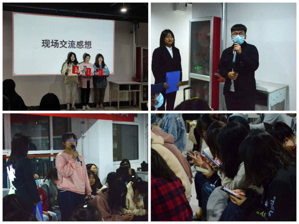 观影结束后,同学们通过QQ平台进行疫情防控知识竞赛,对疫情防控知识进行进一步的加深理解,裴传佳、卢霖霖、尤国荣三位同学分别夺得前三名。最后,主持人与参会同学进行了现场交流,并就纪录片交流了观影后的感受,同学们纷纷就疫情期间发生在身边的感人事迹以及在本次活动中的收获进行分享,现场气氛温情活跃。学生代表代家硕表示:“ 疫情拉开了我们相隔的距离,却拉近了我们心的距离。”