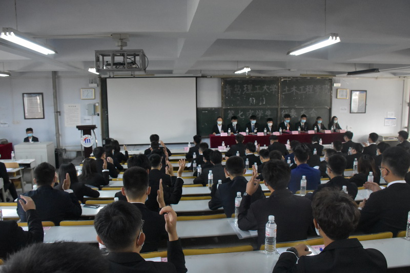 会议学习并讨论党总支书记曲成平的讲话,审议学生会工作报告;酝酿土木工程学院第七届学生会主席团成员候选人名单,选举土木工程学院第七届学生会主席团成员,选举校第十一次学生代表大会代表名单。经过各代表团分团会议的讨论与表决,由总监票人公布计票结果,刘航宇、许宏磊、韩煦三位同学当选为学院第七届学生会主席团成员,徐健等24名同学当选为校第十一次学生代表大会代表。