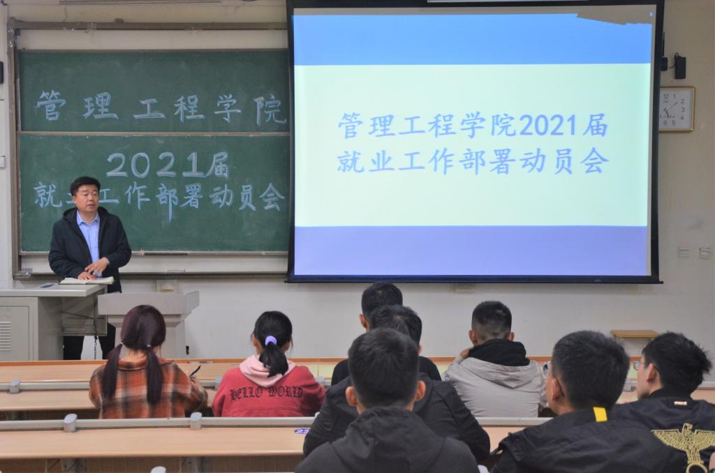 为进一步引导2021届毕业生准确把握就业形势、增强就业信心、树立正确的择业就业观,管理工程学院于10月28日下午在主教学楼B132教室召开2021届就业工作部署动员会,管理工程学院党总支副书记于利俊、就业辅导员张翔及2017级学生代表参加会议。