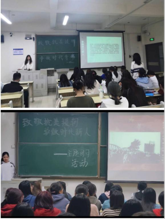 活动中,各团支部积极响应。其中,财管192、经贸203团支部通过PPT再现抗美援朝大事记,带领青年团员回望志愿军艰苦卓绝、浴血奋战的峥嵘岁月,向最可爱的人致敬。同时也让同学们在触摸红色文化中深刻感悟革命先辈们深刻的革命思想、革命文化、革命精神,增进接续奋斗、砥砺前行的使命感。