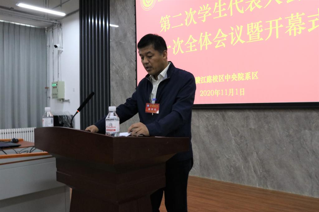 杨春明代表校学生会向大会致辞。他详细介绍了学生会工作的概况,本着为学生服务的态度,表达了对信息与控制工程学院学生会工作的肯定与支持,希望今后在工作中能够切实加强学校与学院学生会组织的交流与合作,互助互勉,共同进步。