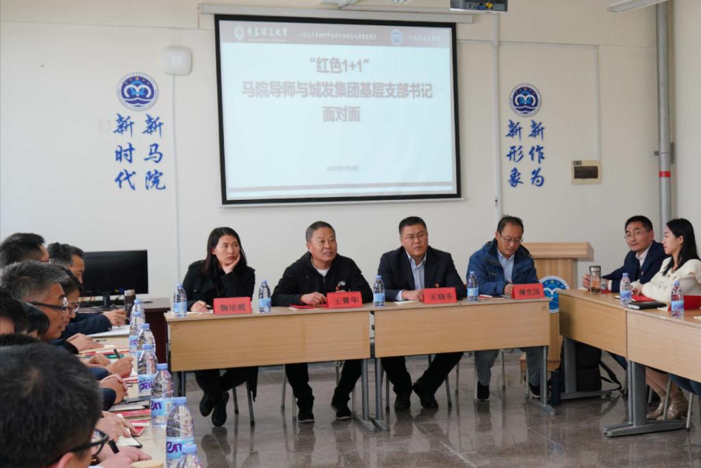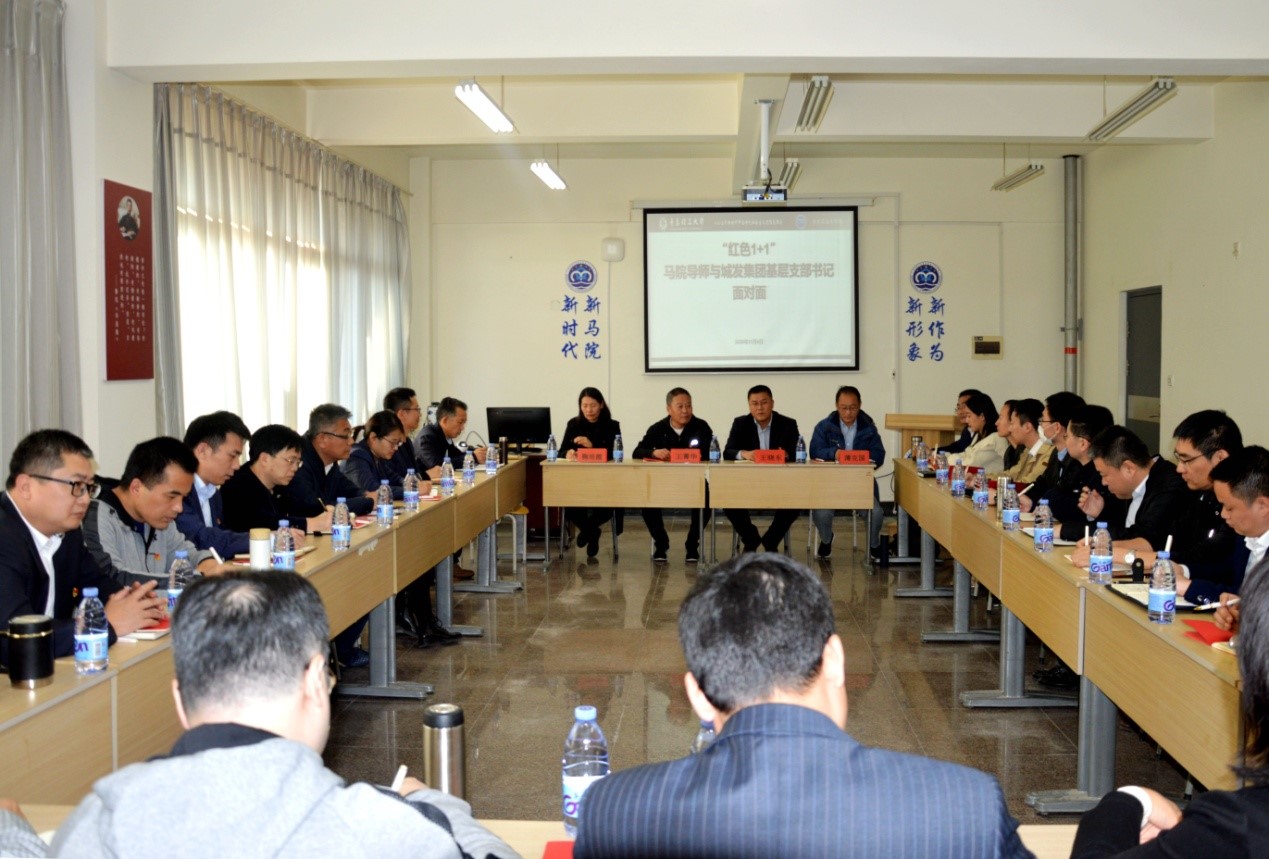 为贯彻落实新时代国企党建工作的新要求,探索企业基层党建工作新模式,11月4日下午,城发投资集团有限公司14名基层党支部书记来访永利集团3044官网欢迎您马克思主义学院,与马克思主义学院结对子的“红色1+1”导师,开展面对面交流活动。马克思主义学院党总支书记王菁华主持会议并讲话,马克思主义学院院长陈国庆、副院长华章琳及相关教师参加会议。座谈会上,双方围绕国企党务培训、党建实践创新及党建与业务相融合等问题进行深入地交流和研讨。