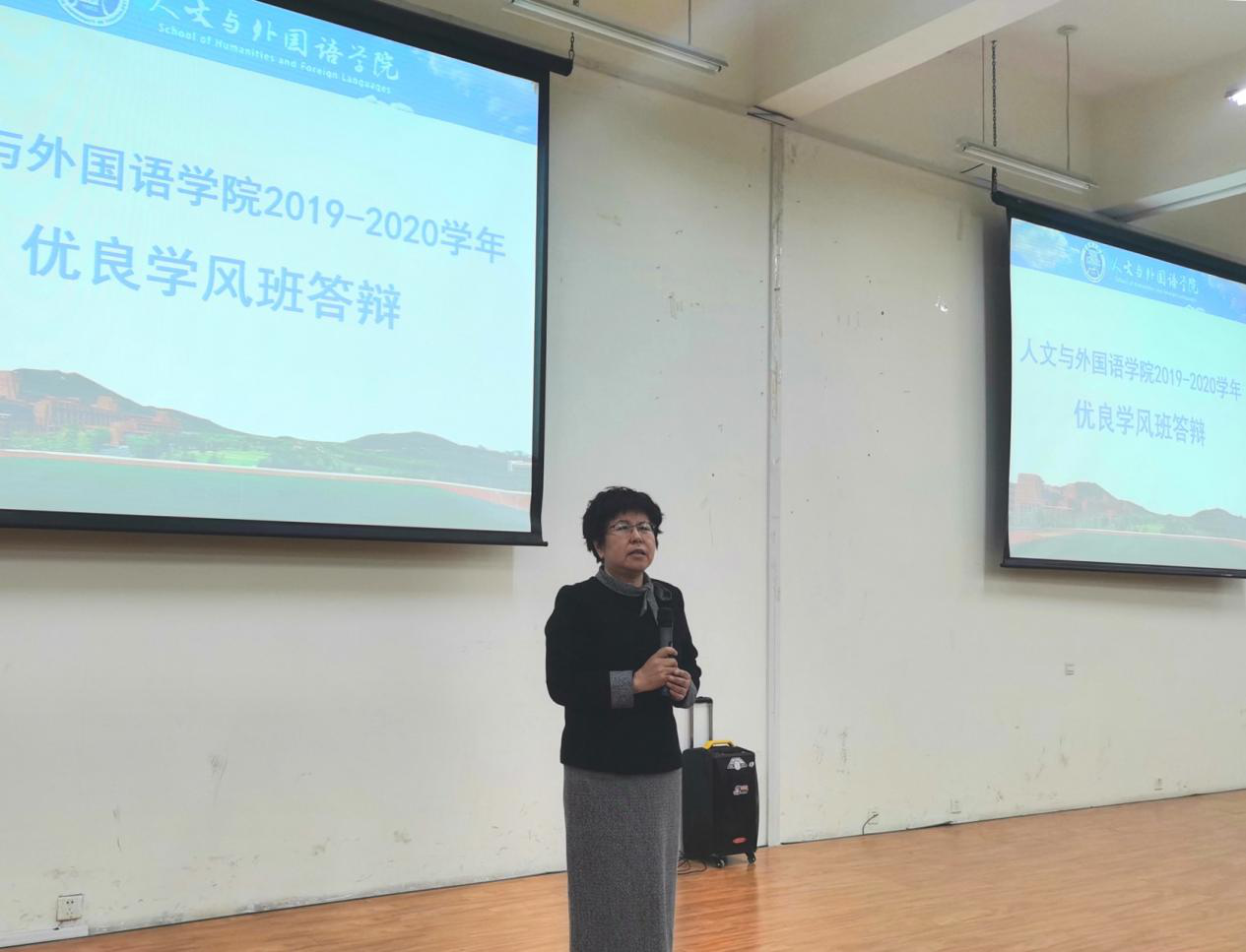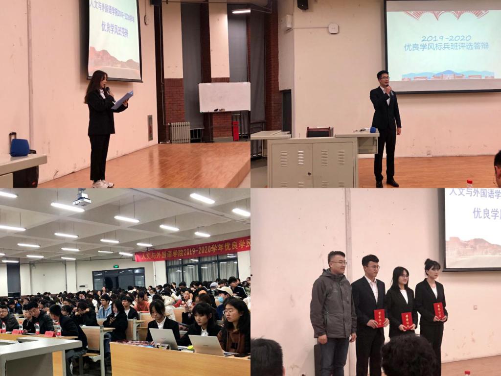 为进一步优化学院人才培养环境,加强学院良好学风建设,对优秀班级进行表彰和激励,培养学生集体荣誉感和团队精神,11月12日晚,人文与外国语学院于主教学楼二楼东报告厅举办2019-2020学年优良学风班答辩会。人文与外国语学院教学副院长王晓东、党总支副书记王振、学工办主任兼分团委书记马松、辅导员陈刚、辛雪梅、贾舒文、王才升、扎西央宗担任评委,17、18、19级部分学生代表参与本次答辩,20级全体新生到场观摩。