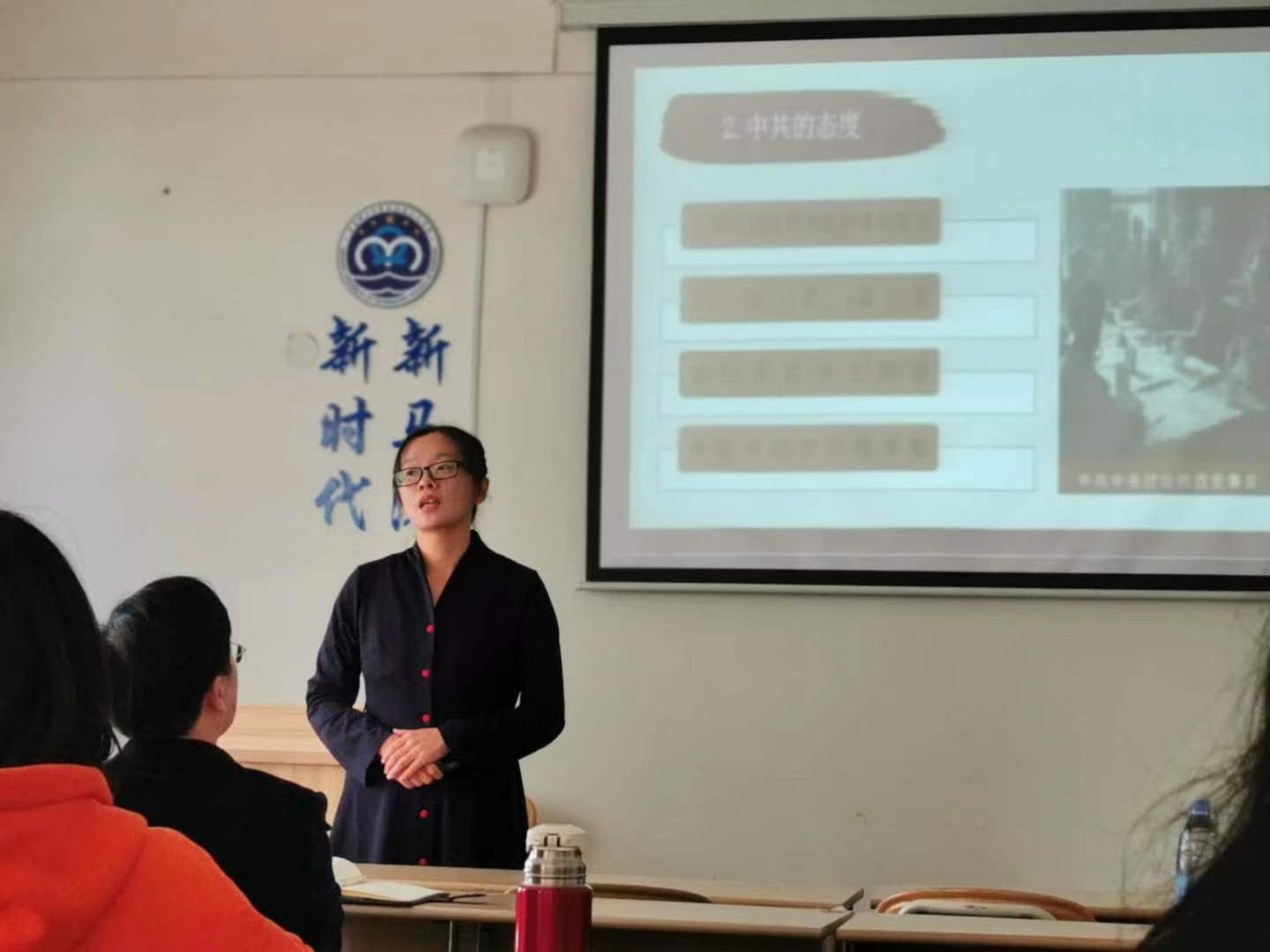 主讲人赵筱侠的主讲题目是“西安事变”,围绕着西安事变的历史背景、过程、解决以及事件结束后的国共合作来展开。主讲人林丰艳讲解了“帝国主义对中国的军事侵略”,开篇抛出问题,最后以解决问题实现升华。两位老师以扎实的理论基础、丰富的教学手段、巧妙的设问与互动、多样的教学案例充分展示了马克思主义学院教师的风采。