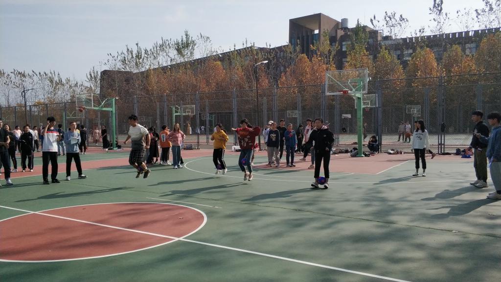 本次运动会共分为四个项目,与往年不同的是,此次运动会除了常见的“投篮大赛”“跳绳比赛”项目外,更是增加了考验同学之间协调合作能力的“夹球接力”和“六人七足”项目。