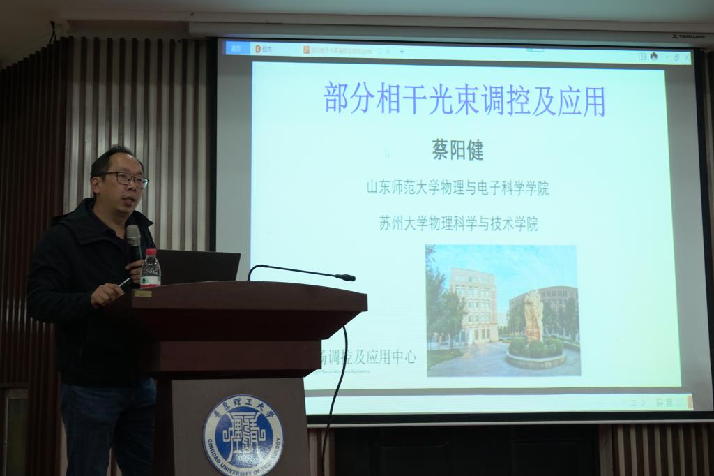 报告中,蔡阳健教授生动有趣、深入浅出向大家介绍了关于光场调控的发展历程、现状和应用,并向大家展示了蔡阳健教授课题组近几年在该领域内完成的工作、取得的进展和突破。蔡阳健教授学术水平精湛,报告内容精彩,现场师生获益匪浅。报告最后,蔡阳健教授真诚欢迎对该研究领域感兴趣的师生前往山东师范大学物理与电子科学学院课题组进行交流访问。