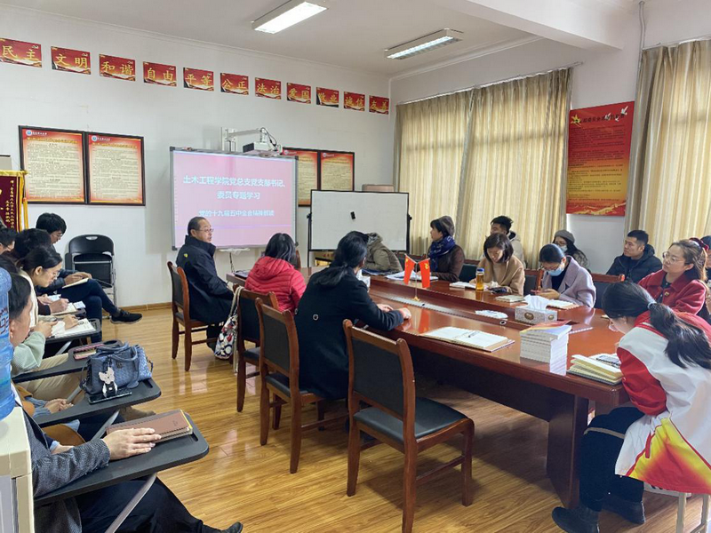 11月24日上午,土木工程学院党总支于1教409党员活动室举办党的十九届五中全会党支部书记、委员专题学习班开班仪式,本次学习班为期三天,党总支书记曲成平主持会议,学院各师生党支部书记、委员参会。
