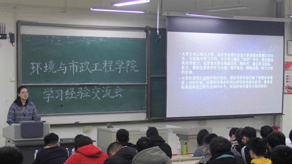 12月2日下午,环境与市政工程学院学习经验交流会在嘉陵江路校区主教学楼B301举行。2020级辅导员宫克菲以及四年级八位优秀学生代表张鑫洋,袁秀连等人和部分2020级学生参加了本次交流会。