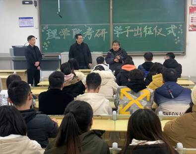 为鼓励考研同学积极迎考,提升考研信心,缓解备考压力,12月21日下午,理学院班子成员及学院各办公室老师一行,亲切看望考研的同学们,并亲自为他们送上“考研加油包”。