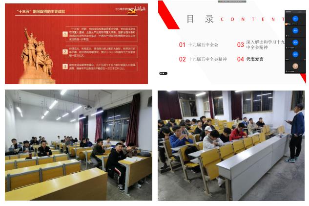 学院2019级各班团支部组织支部成员开展“深入学习、领会十九届五中全会”主题团课,通过班内共同学习、课后撰写心得体会的方式,使班级同学对十九届五中全会精神有了更深入的了解。