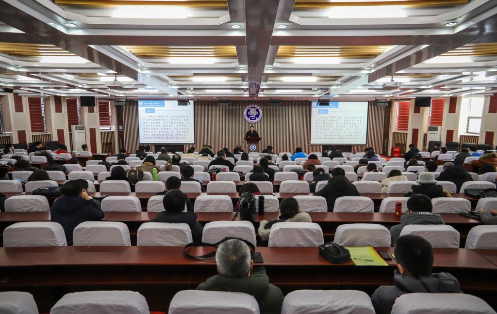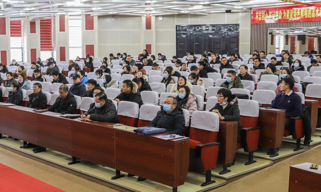 董典同书记向一年来默默为学校及学院做出贡献的全体教职工表示感谢。并向全体教职工传达了学校年度考核工作会议精神,重点强调了教职工年度考核工作要求、第二轮聘期学校中期检查情况、教职工考勤管理办法、疫情防控以及假期安全稳定等工作。董典同表示,2020年是非同寻常的一年,也是非常艰难的一年,受新冠疫情的影响,教职工的学习、生活、工作方式等都发生了较大的变化,给教学、科研和日常管理等工作带来了很大的冲击和影响。全体教职工克服各种困难,以学生为中心,以学院及学校大局为重,较好的完成了学校的各项任务。