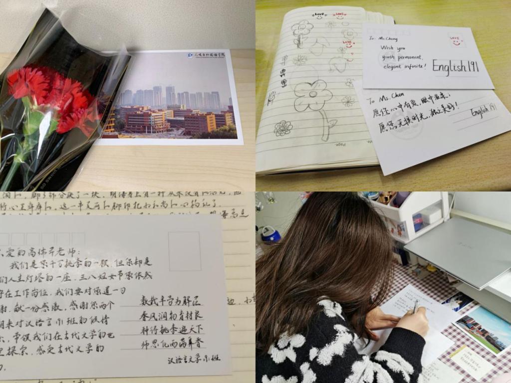 在此次活动中,各班学生精心设计策划卡片文本,用最质朴的一笔一划回报恩师,运用各类精美的装饰材料,制作出一张张专属感恩明信片,每一份作品都凝聚了学生们最真挚的情感,展现出许多各具特色的感恩明信片,有的精致细腻、有的简约大方、有的色彩艳丽。一朵花瓣、一片绿叶,朴素的语言,真挚的情意,都充分表达出学生对教师的美好祝愿。节日之时,同学们将亲手做的感恩明信片送到了每位为他们上课的教师手中,感谢她们日复一日的岗位坚守,感谢她们一点一滴的帮助教导,大家用小小的贺卡承载着人外学子们的感恩之情,传递着对老师崇高的敬意和浓浓的爱意,让全体女教师在春寒料峭的天气里感受到浓浓的节日温情。日语192班矫琦琦表示,通过本次活动为老师献上最诚挚的节日祝福,抒发了自己的感恩之情,师恩难忘,千言盛赞,不能融尽学生们浓浓的敬意。