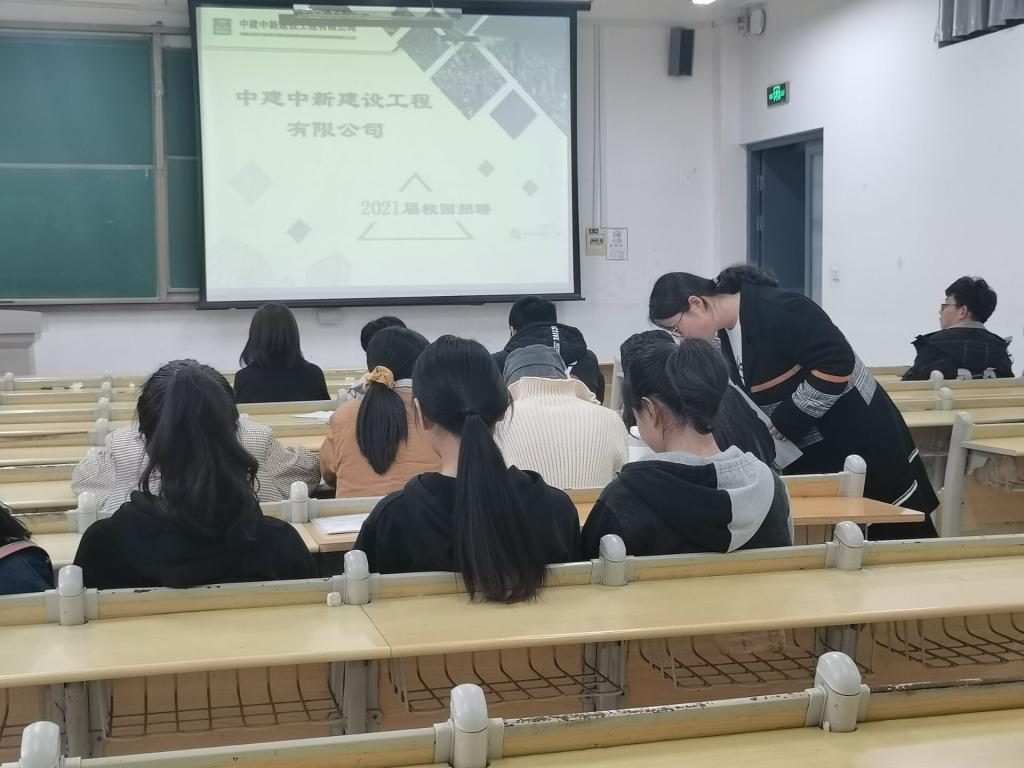 为了拓展2021届毕业生就业渠道,3月17日下午14:30分,管理工程学院于主教学楼B128举办了中建中新建设工程有限公司21届校招宣讲会,中建中新公司人力资源部李波,以及工程管理、工程造价专业40余名毕业生参加了本次招聘会。