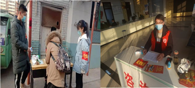 在假期疫情防控志愿服务中,学院孙子涵、杨紫岚、王萌、王昂等20余名党员和积极分子,利用假期主动参与当地社区组织的志愿服务活动,服从社区工作安排,做好疫情防控知识宣传、居民区值守、环境消毒整治等工作。新冠肺炎防控期间,对隔离群众鼓劲打气,为隔离人员运送生活物资,最大程度满足他们的生活需求,以积极乐观的态度引导群众正确理解、配合、参与疫情的防控。凭着责任与担当,每位同学一直努力做好一名战“疫”者,为打赢这场突袭而来的新冠肺炎献出一己之力,为防控工作添砖加瓦。