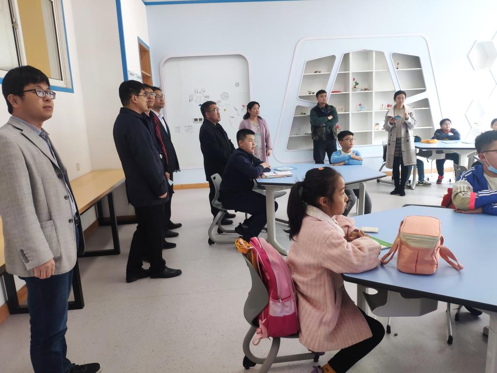 在薛家岛学区教育服务中心相关负责同志陪同下,于进伟一行先后参观了衡山路小学(珠江路小学东校区)STEM、VR/AR室、开源创客室、人工智能室及育才初级中学海洋馆、艺术大厅、国学馆、智慧教室等功能室,对学校生态、文明、现代的设计理念以及高标准的建设、高端的配置给予高度的评价,并提出合理化的建议。