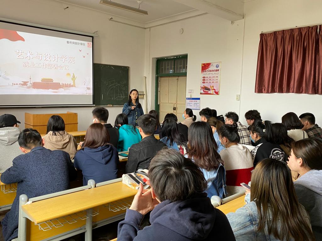 3月31日下午,艺术与设计学院在2教308教室召开2021届毕业生就业工作部署会议,毕业年级辅导员刘芳兵传达教育部、学校关于毕业生就业工作会议的精神,并就2021届毕业生就业工作做了详细的安排。辅导员舒文、王斐及毕业年级学生干部参加会议。