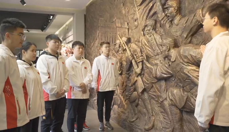同学们怀着庄重的心情,集体肃穆默哀,为革命烈士们献上了鲜花,悼念为革命事业前仆后继、英勇献身的烈士们。于桢琪为大家讲解,纪念馆主要陈列了从1921年以来包含第一次国内革命战争,第二次国内革命战争,抗日战争,解放战争以及解放后五个时期的烈士事迹和文物。同学们意识到,这不仅仅是一座纪念馆,更是青岛人民从压迫到反抗,从低潮到崛起的象征。参观完纪念馆之后,在烈士群雕前,分团委委员刘文彬带领学生代表面向党旗庄严宣誓:“我志愿加入中国共产党,拥护党的纲领,遵守党的章程……”,铿锵有力的宣誓,在耳边与山间回响,同学们纷纷表示今后会努力学好科学文化知识报效祖国,传承先烈精神。