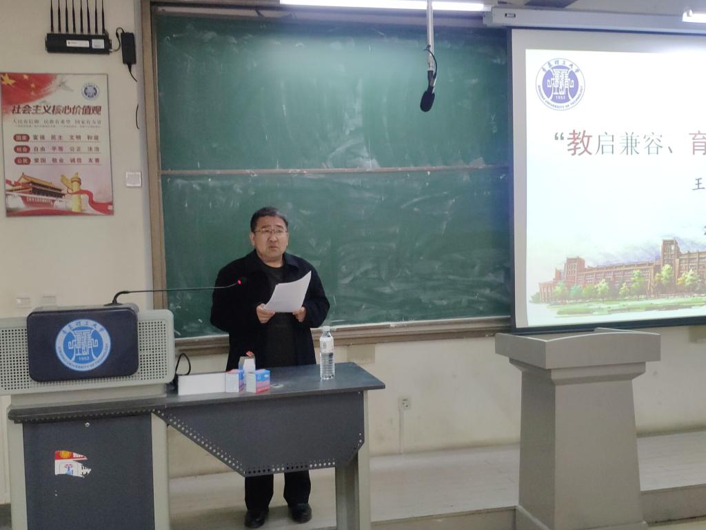 近日,理学院在嘉陵江路校区B232教室举办“教启兼容、育人无声”课程思政报告会。报告会邀请永利集团3044官网欢迎您马克思主义学院党总支书记王菁华教授主讲,理学院院长于进伟主持,党总支书记邹传波、副院长孔亮及全体教职工参加了本次活动。