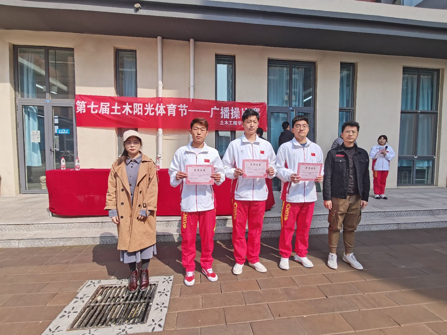 4月7日下午,土木工程学院第七届土木阳光体育节——新生广播操比赛在嘉陵江路校区东区五公寓楼下落下帷幕。学校体育教学部副主任张桂清,群体竞技中心主任于健,体育教学部辛琪,土木工程学院党总支副书记邵先锋,分团委书记王中帅,辅导员李恺、刘晓桐、孙宇参加本次活动。