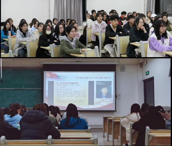 商学院全体学生在教室、宿舍等多个分会场进行集中观看,在观看讲座的过程中,同学们都认真记录笔记。学习结束后,不少同学感悟颇深。“我作为入党积极分子,更应该不忘初心、牢记使命,勇于担当、甘于奉献,在新时代长征路的第一线倾情投入。”会计203班石中说道。“我们要用美好青春彰显商院人的风采,理工人的担当,诠释共产党人的初心使命,谱写新时代的青春之歌。”经济202班李昀彤说道。“作为新时代的青年,我们要用党的光荣传统和优良作风坚定信念、凝聚力量,用党的实践创造和历史经验启迪智慧、砥砺品格,为民族振兴贡献力量!”经贸191李若林说道。