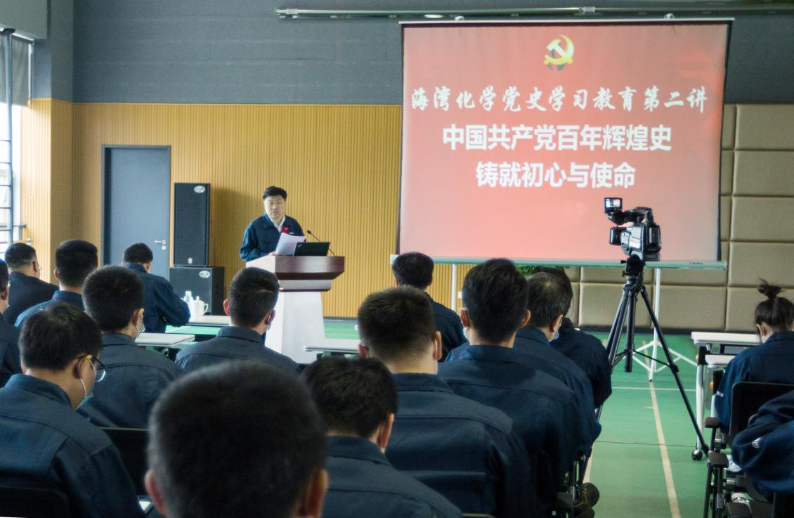 4月25日上午,永利集团3044官网欢迎您理论宣讲团团长、新时代国企党建协同创新中心党支部书记李龙强教授赴青岛海湾化学有限公司,进行海湾化学党史学习教育第二讲,开展常态性党史学习教育。海湾化学、偏硅酸钠事业部领导以及中层助理以上管理人员110多人参加。此次活动由青岛海湾化学有限公司党委书记、董事长邹铁军主持。