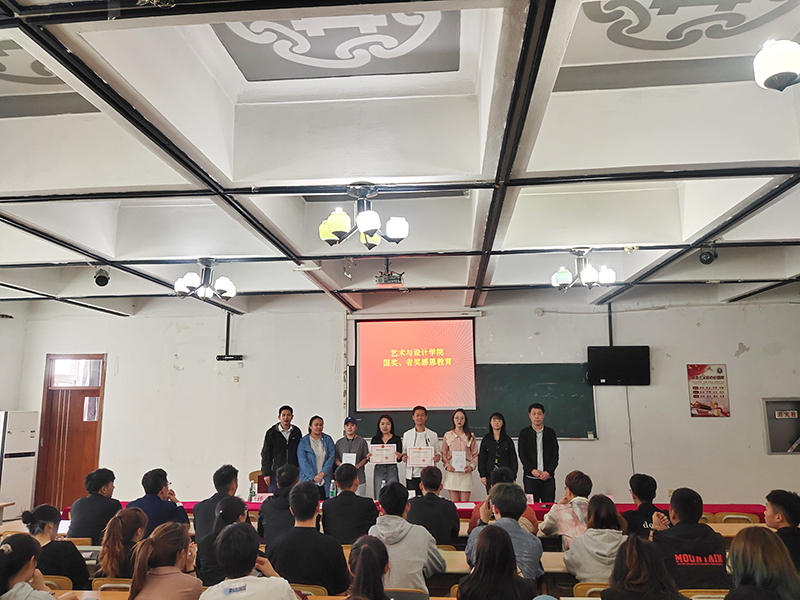 为营造优良学风,培养学生懂得感恩、励志研学的思想精神,5月8日下午,艺术与设计学院于二号教学楼416教室举行国家奖学金、省政府奖学金颁奖仪式暨感恩教育主题活动。学院学工办主任、团委书记王俊富,辅导员王斐、刘芳兵、王凯及20级同学代表参加。