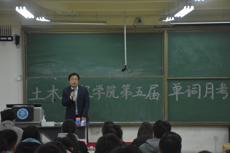 5月13日下午,土木工程学院于嘉陵江路校区B201教室举办第五届“单词达人”表彰大会。学院党委副书记邵先锋,辅导员李恺及2020级各班代表参加表彰大会。