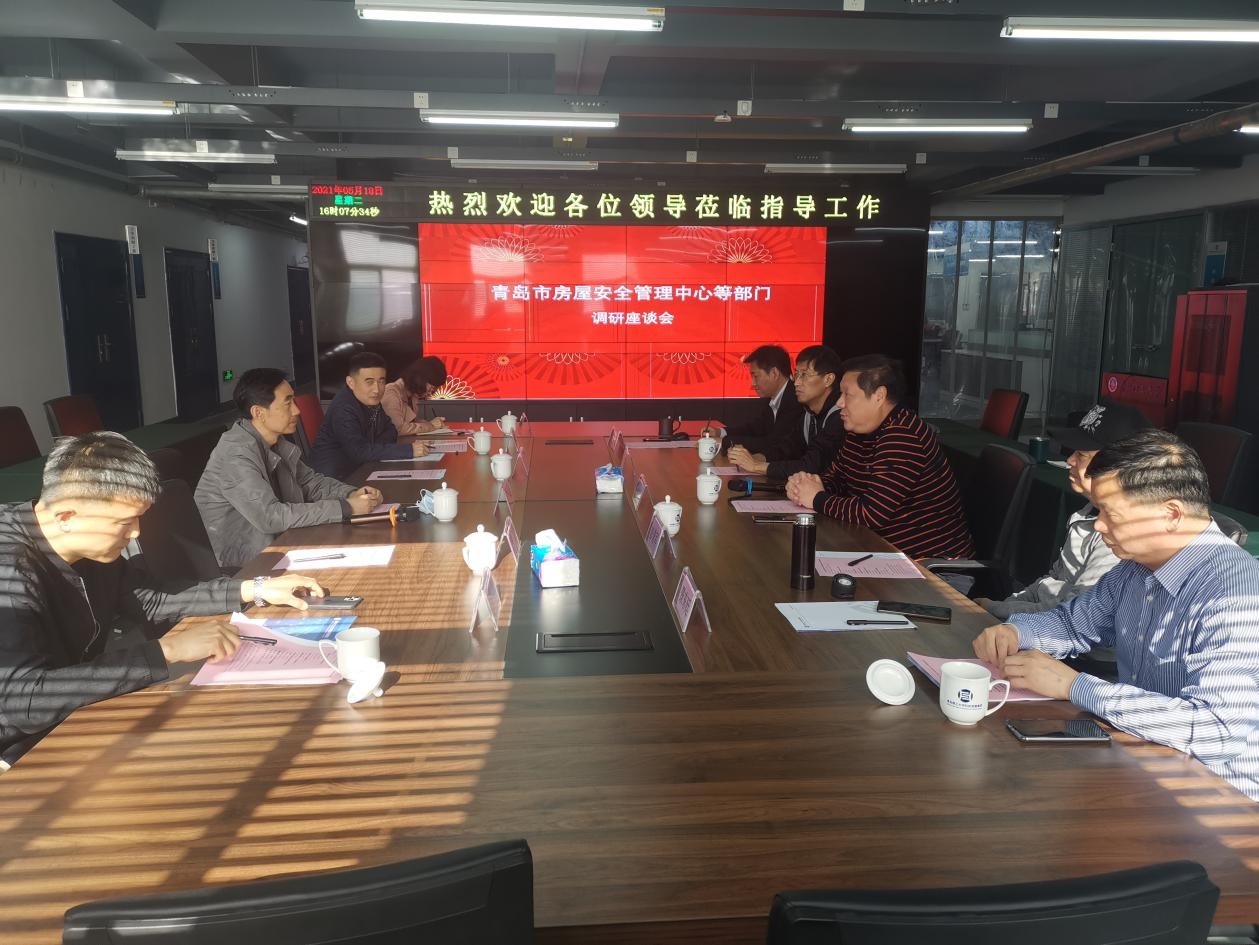 5月18日,青岛市房屋使用安全服务中心主任徐志勇、副主任刘君旭、王强,青岛市住房保障中心主任李云生等一行来科发集团考察城市建筑云平台建设情况。科发集团总经理杨卫东主持会议,科发集团副总经理于素建、城市建筑云项目负责人王金刚、青岛市房屋安全鉴定行业协会相关负责人参加会议。