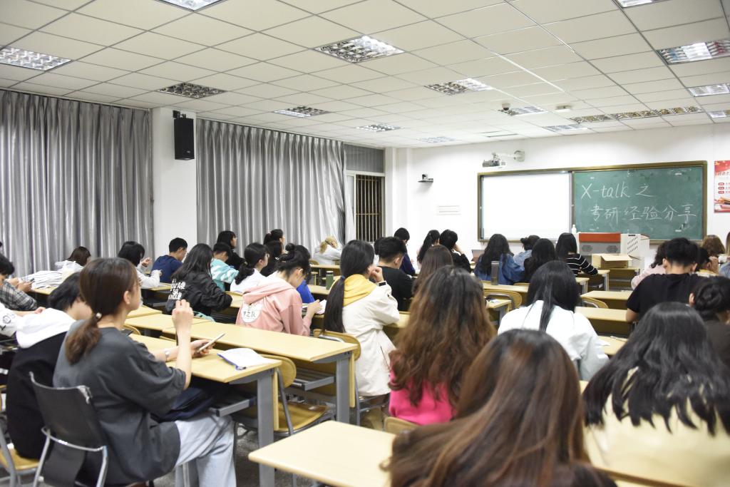 分享会上,刘爱灵提醒同学们应合理择校,选择与个人专业水平相匹配的学校,并向同学们分享了自己的备考方法。史珈溪向同学们分享了自己的研究生考试跨考经历,围绕跨考与择校和同学们进行了分享与交流。她建议同学们应选择适合自己的复习模式,做到步步为营,不应盲从别人的经验。周萌通过图表、数据等直观简洁的表达方式与同学们分享了自己在考研期间所积累下来的宝贵经验,并建议同学们尽早确定报考专业和报考院校开始针对性备考,同时也应坚定信心,保持初心。最后,李佳向同学们具体介绍了各科的复习策略与复习方法,并为本次分享会做了总结。