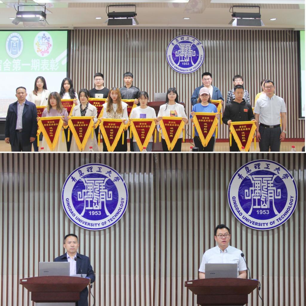 主会场活动中,董兰国介绍了商学院在积极响应学校标准宿舍建设中所做的工作和取得的成果,并宣布商学院第六届社区文化节正式启动。商学院以标准宿舍为抓手,带动宿舍学风建设,通过开展海豚进宿舍活动,在114间标准宿舍中评选出了涵盖了本科生、研究生在内的14间学风表现突出的标准宿舍,被评选为商学院第一批“海豚星级宿舍”。申维东和董兰国为14间“海豚星级宿舍”颁发流动红旗,一面面鲜红的旗帜,既是对标准宿舍的肯定,也为同学们树立了宿舍建设的标杆和榜样。