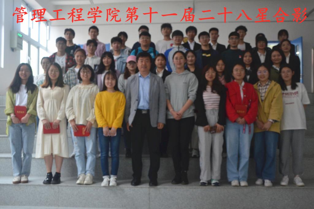 为树立先进典型,发挥榜样示范和朋辈引领作用,6月2日下午,管理工程学院于嘉陵江校区C1-2楼301教室举办第十一届群星璀璨之“管院二十八星”颁奖仪式,党委副书记于利俊,学工办主任兼分团委书记陈永亮、2019级辅导员李佳妮、张冯冯及二十八星全体获奖学生参加仪式。活动由李佳妮主持。
