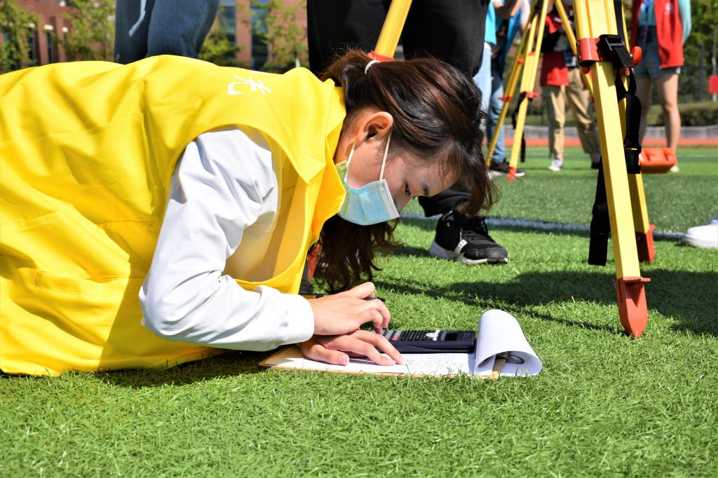 比赛现场,同学们认真进行仪器操作、读取数据,然后进行内业计算、分析测量精度。烈日炎炎,参赛成员们聚精会神,挥汗如雨,你追我赶,精准测量,认真记录。各个队伍分工明确,团结协作,拼搏进取,共同完成测量任务,展现出我校大学生积极向上、勇攀高峰的精神面貌和意志决心。