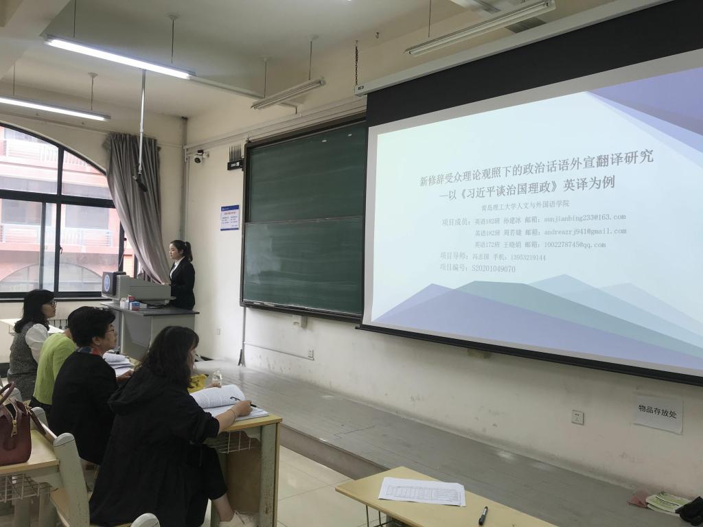 本次答辩中有两组尤为引人注目。一组是《翻译修辞学视域下中国政治话语外宣翻译研究》项目。本项目从翻译修辞学的视角分析《习近平谈治国理政》(英文版)两卷本,归纳中国政治话语外译的特点,进而为政治话语外译提出新方法。另一组是《生态文明背景下社会工作介入社区垃圾分类的路径 ——以青岛市黄岛区社区为例》项目。本项目以黄岛区的两个社区为对象,设立社工介入社区垃圾分类这一思路,创新地将“居民生活垃圾网”与“废旧资源回收网”相串联,在介入中帮助居民养成垃圾分类习惯,提高节约资源意识,增强居民参与社区治理的能力,促进循环经济的发展,为我国建成绿色发展型社会助力。
