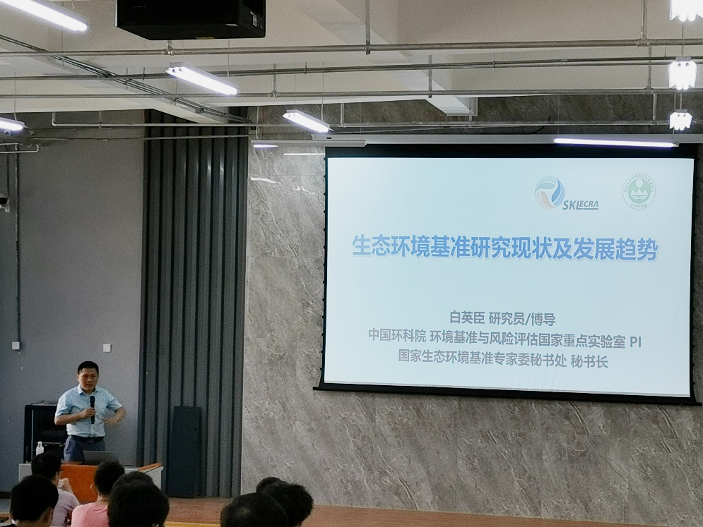 报告会上,白英臣首先介绍了生态环境基准的定位、目标和作用,之后系统阐述了生态环境基准的国际研究现状与发展趋势,提出针对地理和地质条件差异、生态系统和人群暴露差异及社会发展阶段差异,着力构建符合我国国情和区域特征的环境基准体系,并对环境基准“十四五”规划的编制工作进行了简要介绍。最后,白英臣为在场师生解答了关于环境基准的相关疑惑,并提出了建设性建议。