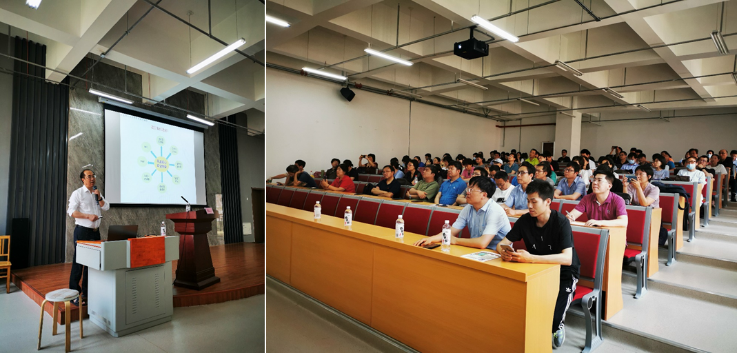 张汉壮教授用风趣幽默的语言,围绕“深化课程建设,践行育人使命”的主题,以《物理学导论》课程体系为范本,详细阐述了如何以课程建设为载体,践行好育人使命。他强调,课程内涵建设要注重课程逻辑性、历程性和应用性的讲解以此培养学生科学思维能力、研究方法能力和科学探索能力,真正实现课程育人。张教授的报告内容丰富、理念先进、观点新颖,与会人员深受触动,也赢得了参会教师和学生的热烈掌声。