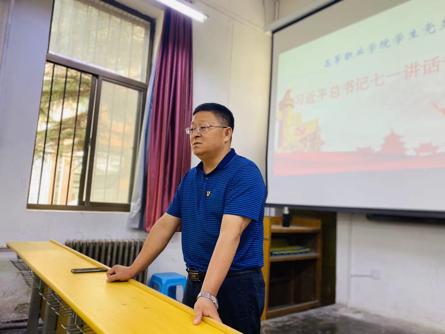 为深入学习领会习近平总书记“七一”重要讲话的重大意义、主要内容和丰富内涵,2021年7月7日上午,高等职业学院学生党支部于1教231室召开习近平总书记“七一”重要讲话专题学习会。学院党总支书记孟凡勇、学生党支部书记范晓光、全体辅导员以及学生党员参加。