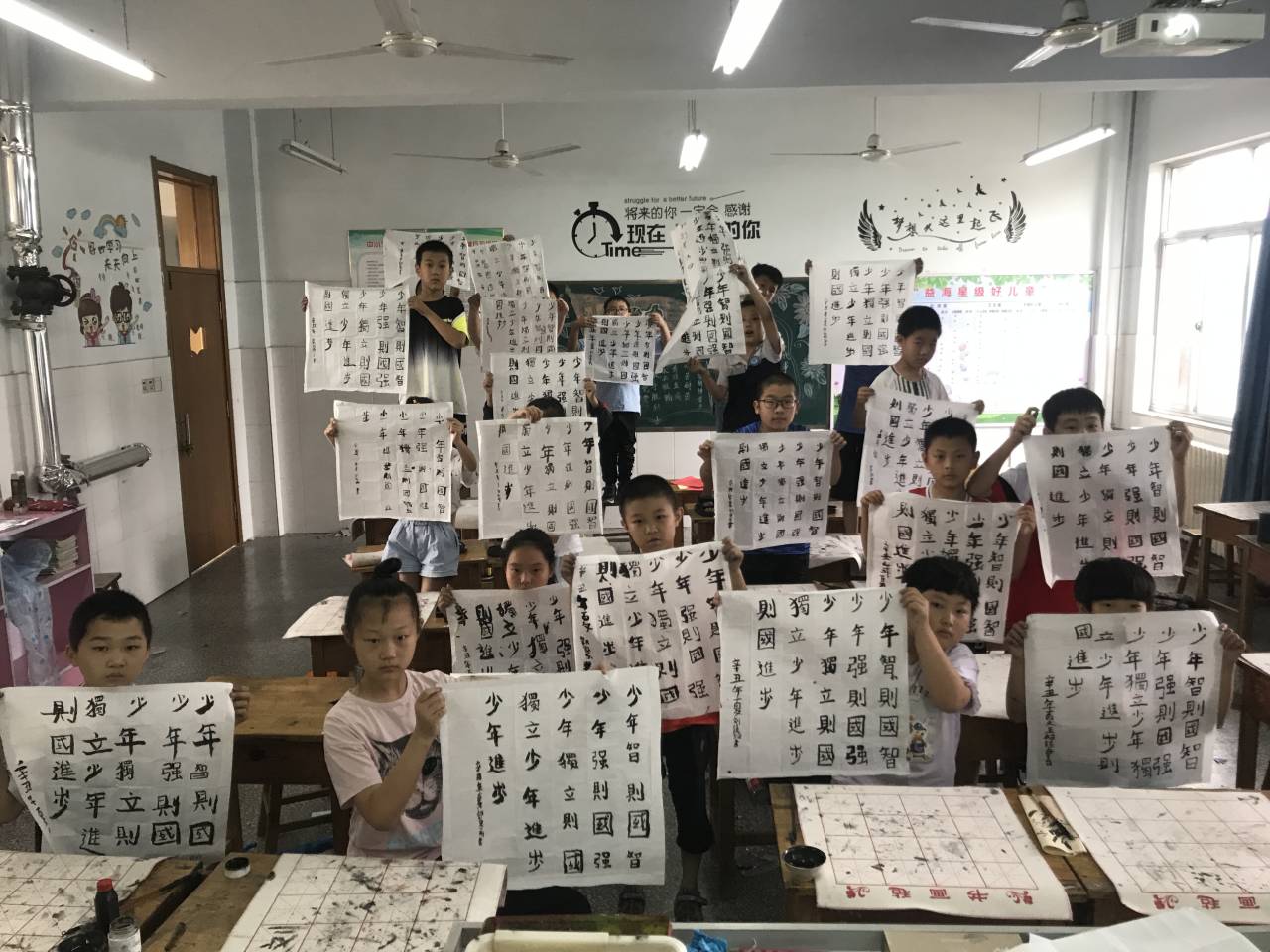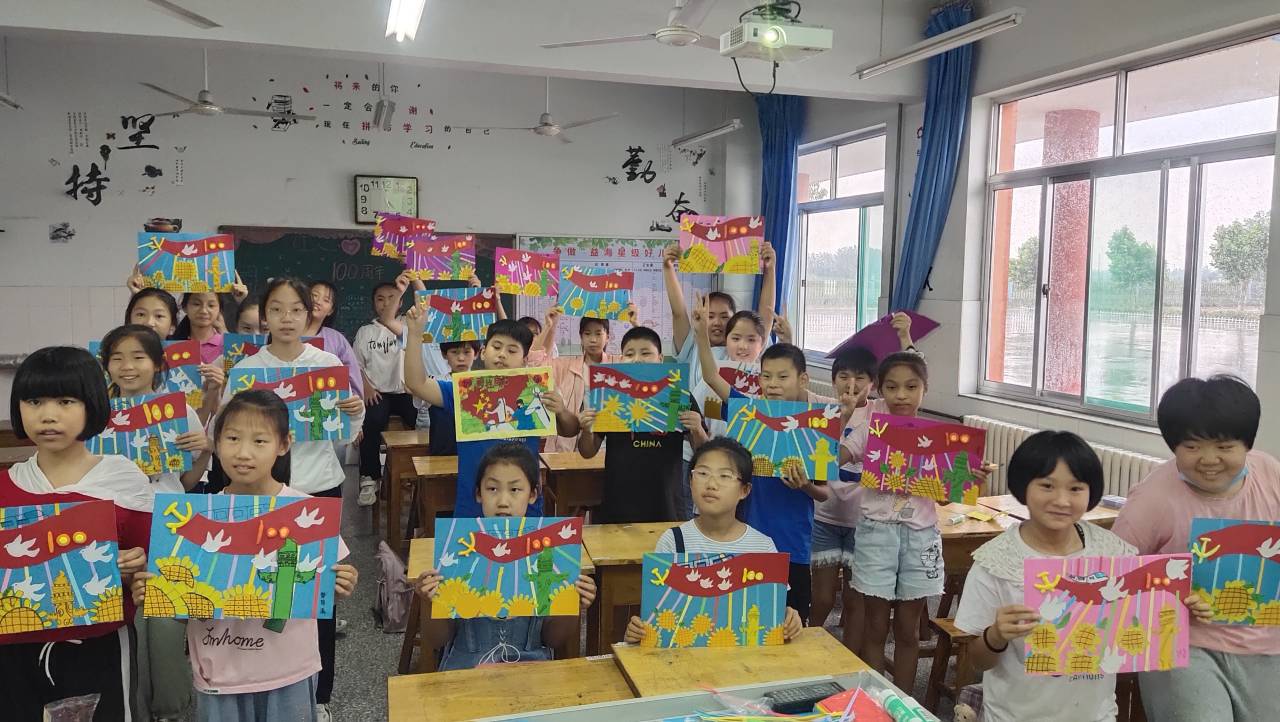 7月12日中午,正式开启了此次支教之旅。在博兴县锦秋益海小学陈校长的带领下,进行了支教相关工作的准备。第一天,志愿者们向学生们进行《战疫》《建党百年》《长征》等专题的讲解;志愿者们充分发挥自己的专业特长,开展美术、体育、舞蹈、音乐等课程的授课工作,着重在实用知识的传授和学生综合能力的培养两个方面着手,通过课堂教学和实践活动进行知识传授,充分发挥学生的积极主动性,课堂生动活泼,课程有趣多样,学生表现热情,学习氛围浓厚。手工课程是本次支教的特色课程之一,课程多元整合、开放、且极具趣味性,孩子们自己动手,充分发挥想象力,在志愿者们带领下,一幅幅惟妙惟肖的作品呈现在孩子们面前,大家脸上都洋溢着笑容。课程不仅仅提高了孩子们的动手能力和创造力,志愿者们的教学能力和教学成果也得到了学校领导的一致好评。