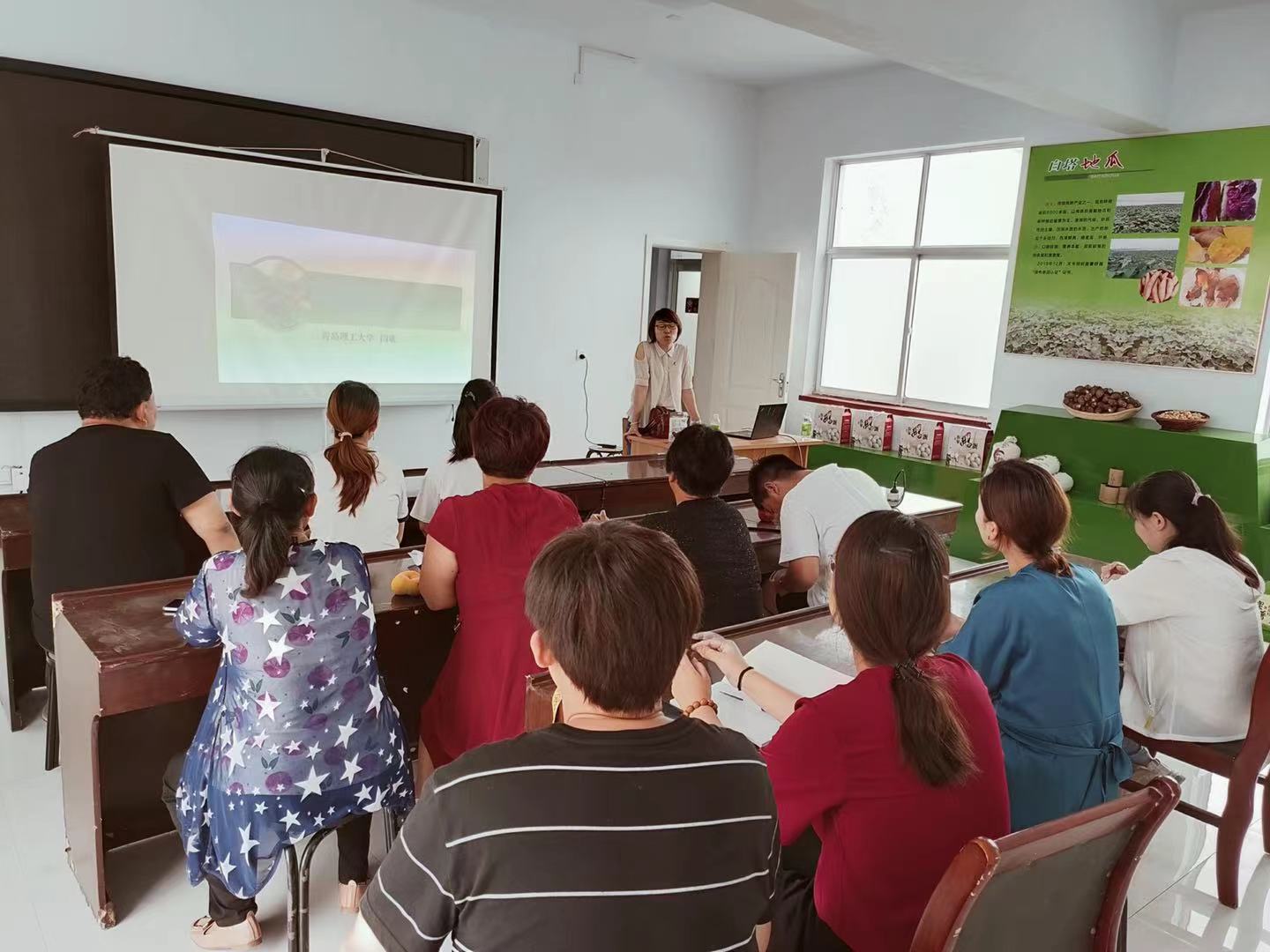 揭牌仪式后,商学院电子商务专业闫敏老师受省派驻高崖库区小队邀请,向入驻电商企业员工和准备加入电商销售的青年村民讲授电商知识,为电商小院充分发挥作用提供智力支持。