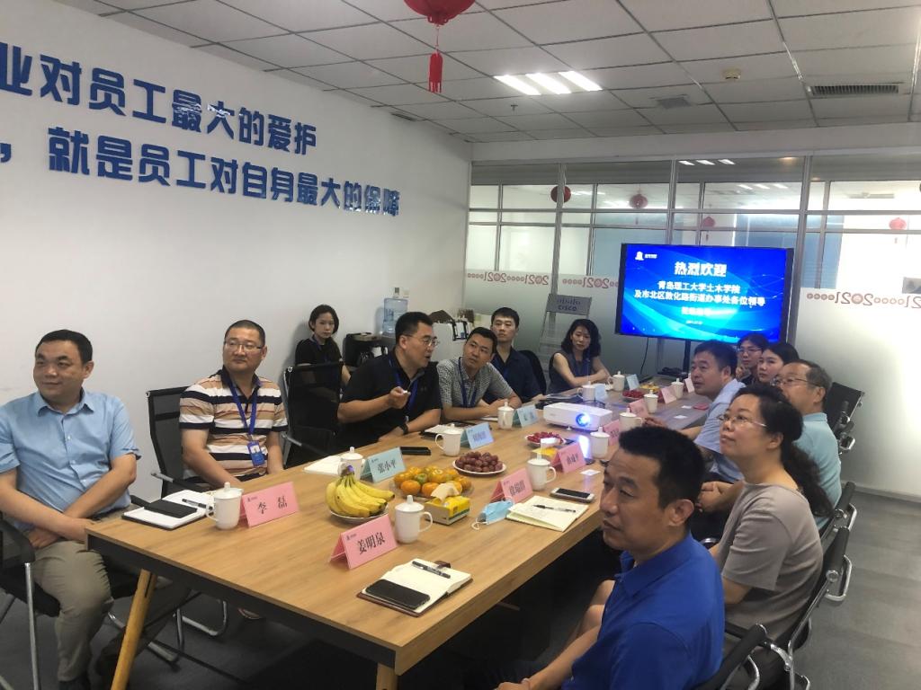 为进一步加强与用人单位联系,准确把握企业用人需求,提高学生就业质量,7月27日上午,土木工程学院党委书记曲成平、党委副书记、副院长邵先锋,辅导员刘欣然、杜诗琳赴山东宝津集团走访交流。青岛市市北区敦化路街道党工委书记徐瑞群、宝津集团总裁周海滨等参加座谈会。