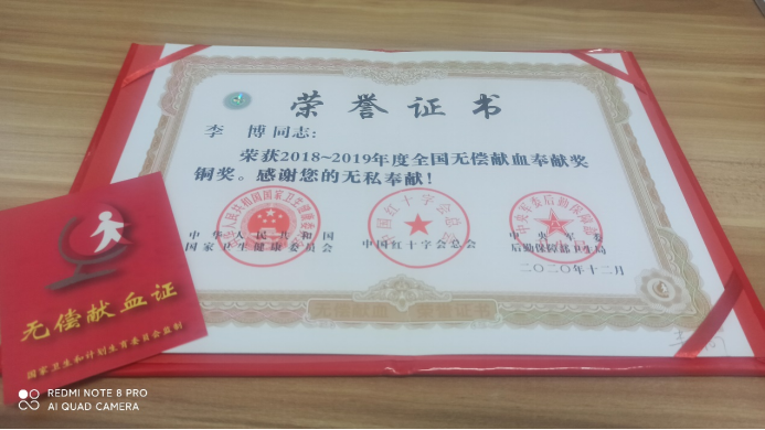 经历首次献血后,李博并未发现身体有任何不适,一颗积极参与义务献血的初心悄悄萌芽。