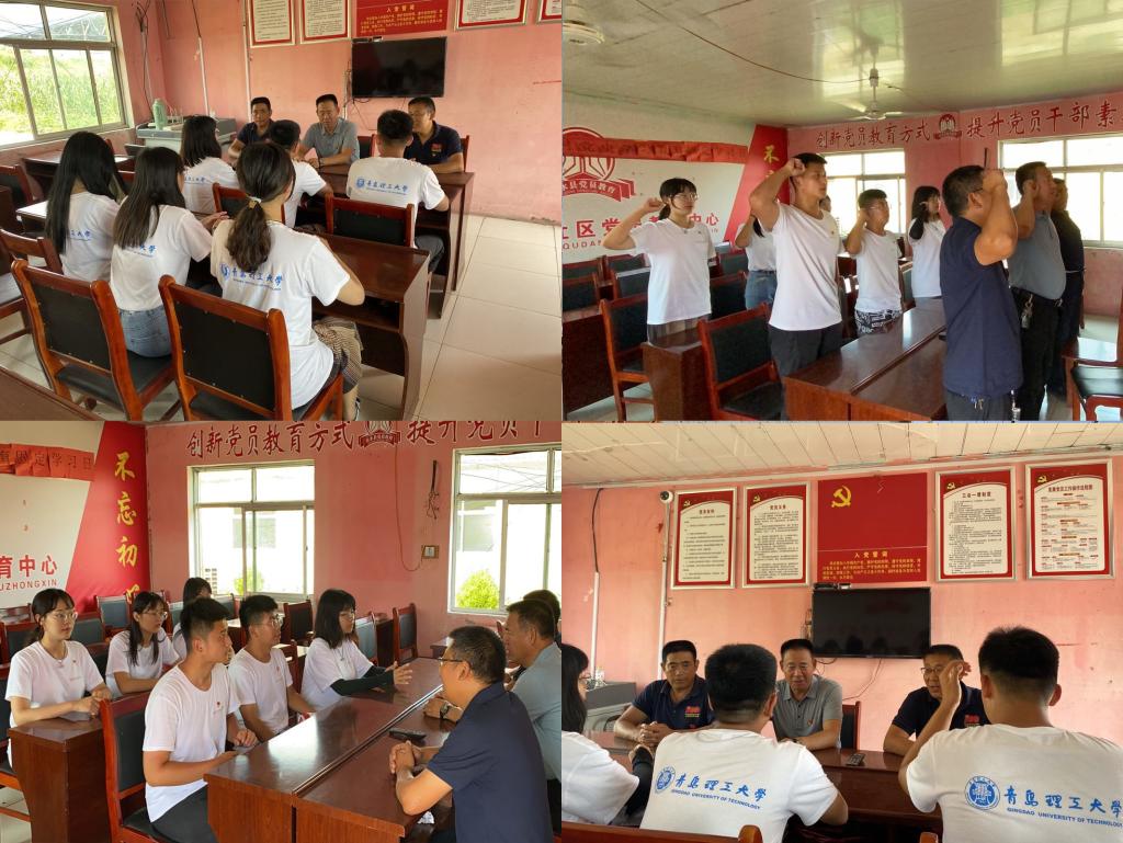 墙绘之余,宿山社区书记江云山、社区主任刘春亮、党委派出包村干部江兆军作为党员干部代表,带领团队六名学生党员来到宿山社区党员教育中心,为团队学生党员讲述村子里的党建情况。江云山带领党员同志们重温入党誓词,声音铿锵、句句千钧。掷地有声的宣誓中,怀揣着每个人作为共产党人的初心使命,仿佛重回当初加入党组织的那一刻,令在场的党员们更加坚定了自己的理想信念和党性认识。