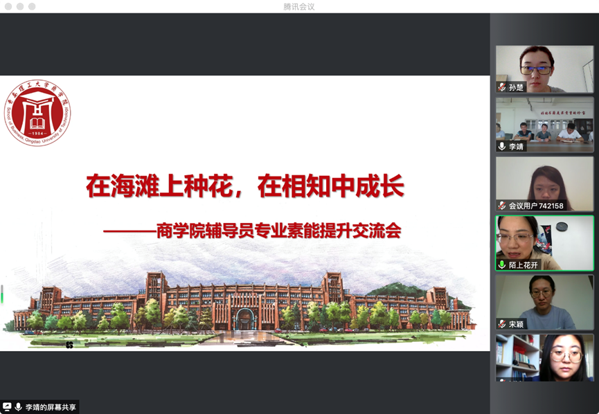 8月21日上午,商学院邀请山东大学教授、学生工作部副部长范蕊以“在海滩上种花,在相知中成长”为题,就辅导员专业素质能力提升进行线上交流。会议由商学院党委副书记、副院长李慧主持,商学院全体辅导员参会。