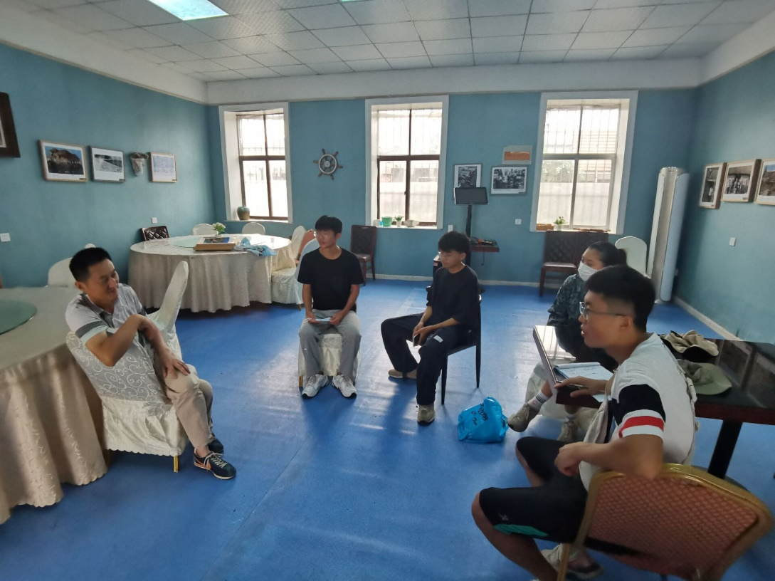 8月1日下午,团队成员陆续抵达荣成市俚岛镇中我岛村海草房古村落,入住中我岛村的传统民居海草房院落,针对于未来几天的活动地点及内容进行具体规划,当晚便在民居周围完成游览和测绘工作。次日,团队成员在抗战老兵王力的带领下,先后参观了王德晟故居、淮海战役中转站和王家大院民俗博物馆。在参观中,成员们了解到中我岛村的红色历史背景以及海草房的建造过程和原始院落的建筑形制。随后,团队驱车前往烟墩角村进行布局考察,在民宿老板带领下,参观了几处改造后的民宿,成员对于改造民宿中体现出精益求精的精神十分赞叹。