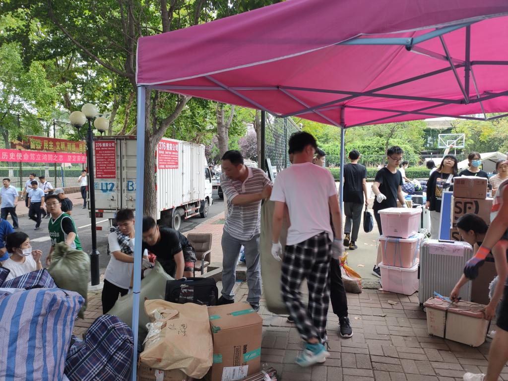 学院党委副书记、副院长徐佐君,研究生辅导员王斐多次深入宿舍摸排核实学生身心状况和思想动态。搬迁前,学院考虑到行李打包、物品繁杂等问题,统一采购了纸箱、编织袋、胶带、记号笔等打包物资,为同学提供便利。搬迁中,学院领导以及辅导员老师现场协助指引搬迁工作,并以身作则带头投入搬运工作。师生共同努力,互帮互助、克服天气炎热、楼层较高等困难,下午6时许,经过四个小时的奋战,搬迁工作基本结束。随后,徐佐君和辅导员们走访了学生宿舍,了解了同学们对新宿舍的适应情况。