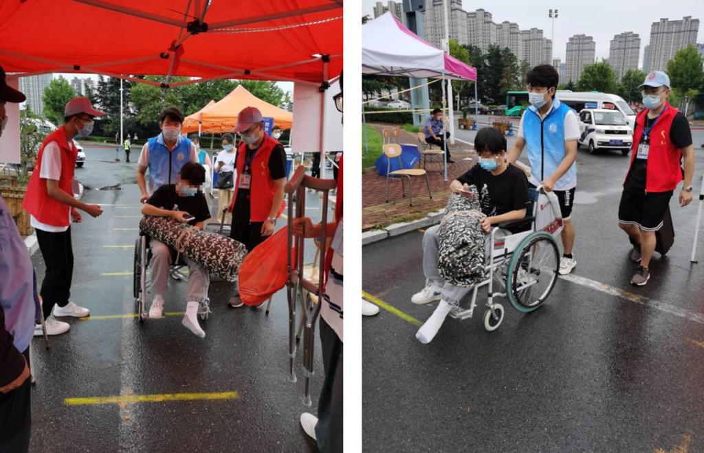 材料181班的志愿者刘昊润刚刚交接完服务任务,准备轮岗休息的时候,就远远看见一名坐着轮椅的同学艰难地往校门口来。他立刻跑了过去,“同学,我帮你推。”就是这样简单的一句话,刘昊润帮助这个因骨折而需要轮椅的同学一路顺利地完成了从入校检验、到乘车再到公寓的一系列事务。看到他在宿舍安顿下来,“同学,这是我的电话号码,如果你室友还没回来,有啥需要你就给我打电话就行。”刘昊润擦了擦额头上豆大的汗珠,认真叮嘱后,才放心离去。