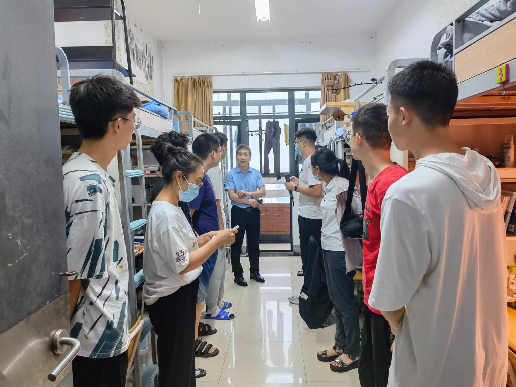 为了解学生返校情况,关注学生新学期生活及思想动态,排查宿舍安全隐患,督促防疫常态化工作有序开展。8月30日开学第一天,理学院全体学生工作干部,前往学生宿舍走访并看望返校学生。