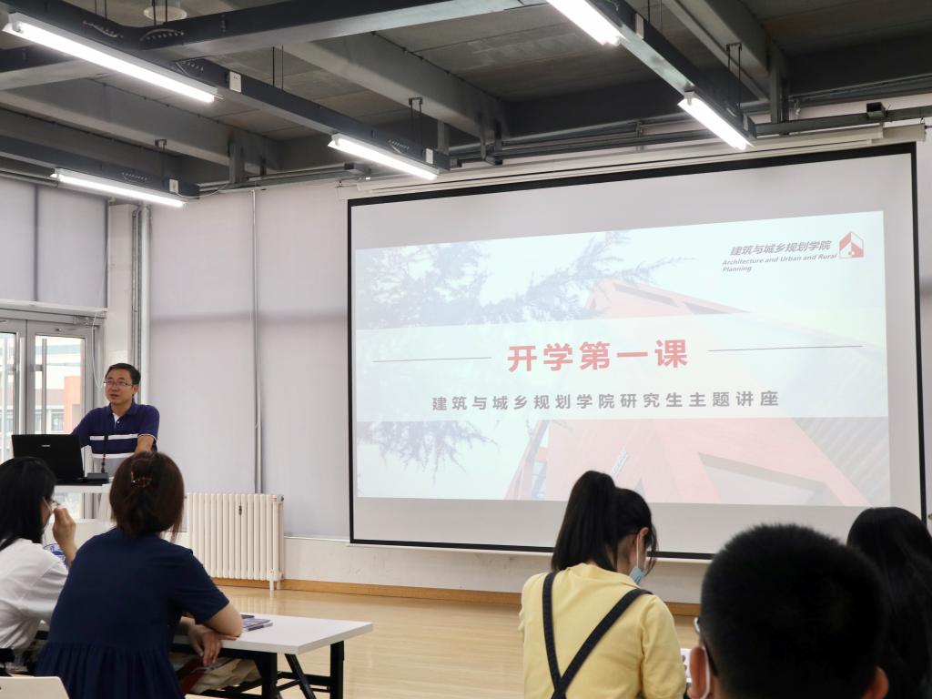 为学习贯彻习近平总书记“七一”重要讲话精神,进一步加强党史学习教育,推进思想政治建设,9月3日下午,建筑与城乡规划学院于滨海人居学术创新中心七楼开展党史学习教育暨秋季开学第一课活动。学院党委书记肖学斌、副院长朱一荣、研究生党支部书记刘超、2019级研究生学生干部及全体2020级研究生参加。