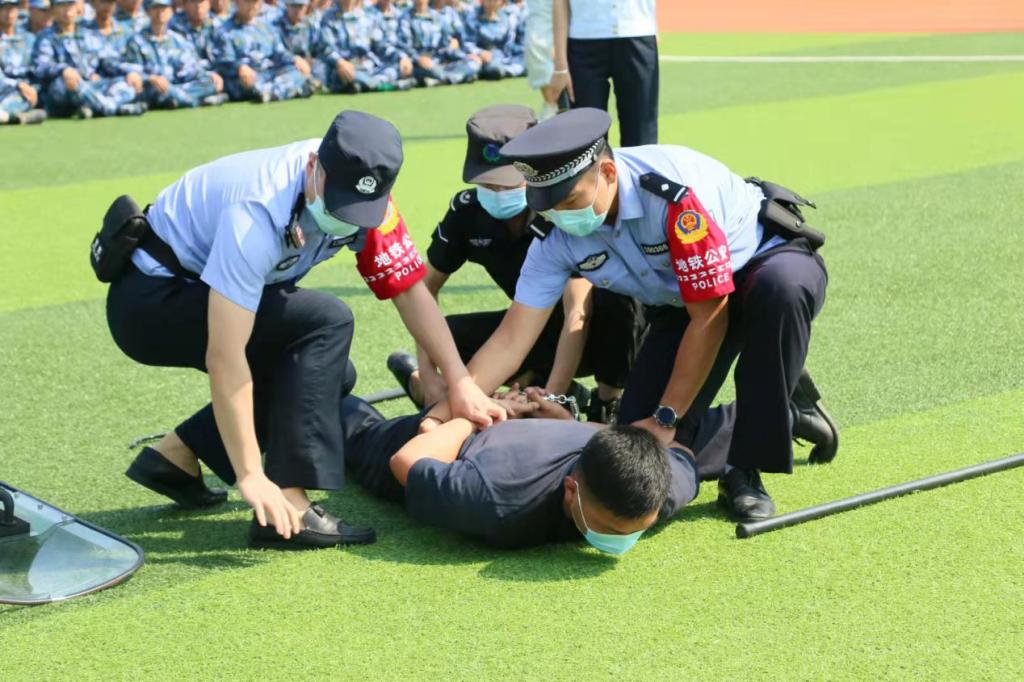 活动中,灵山卫站派出所民警向全校师生详细讲解了应急防范、暴恐袭击等突发情况自救措施,对防暴盾牌、抓捕器等反恐防暴处突装备进行了展示,并开展了以“刀斧砍杀”为科目的应急处突演示。