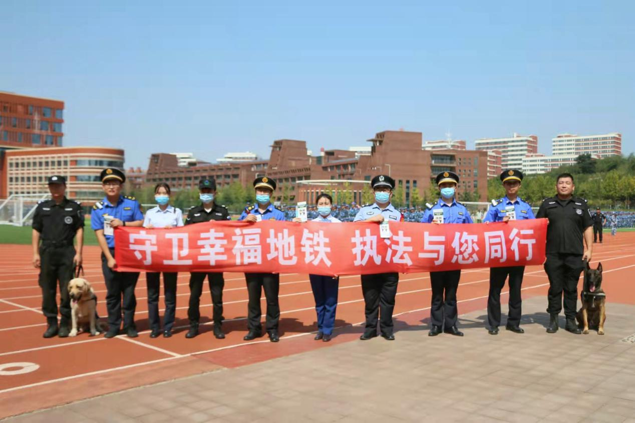 9月14日,青岛市公安局地铁分局刑警大队警犬工作站、地铁灵山卫站派出所、地铁行政执法大队联合到我校开展安全宣讲进校园活动。